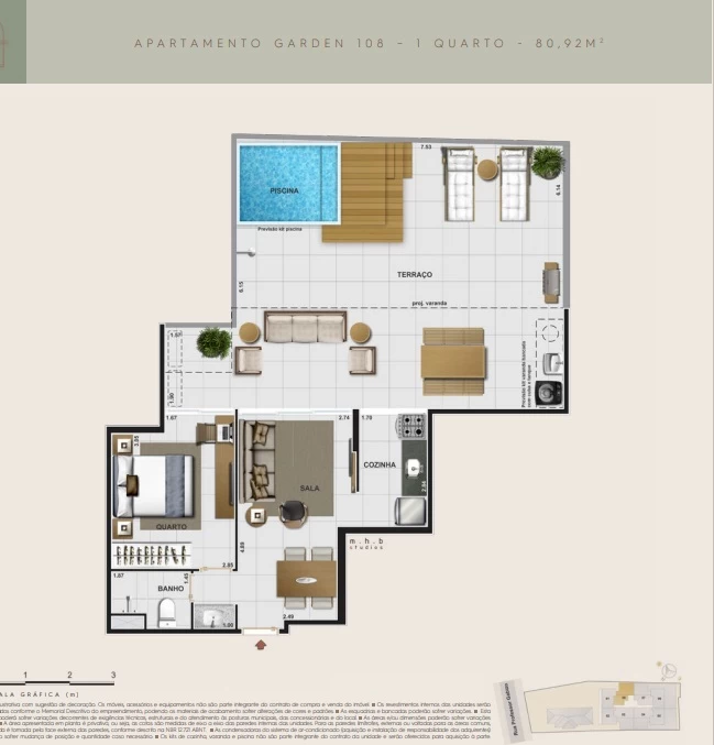 Apartamento Garden 1 quarto com 80m².