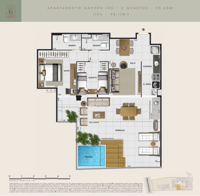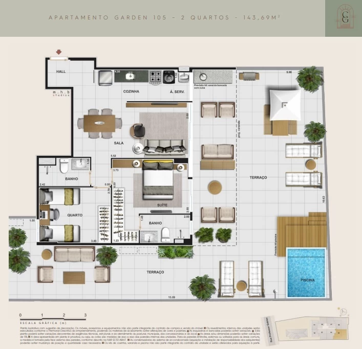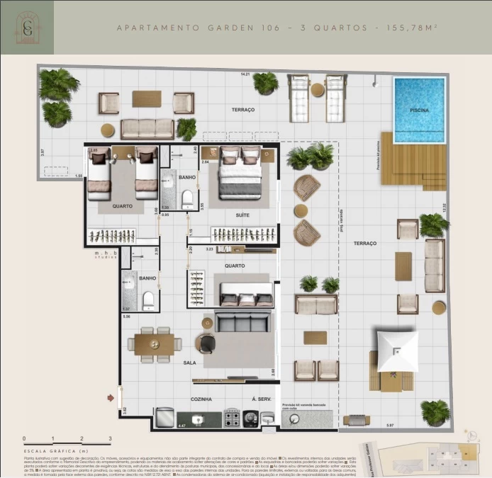 Apartamentos Garden 3 quartos com 155m².