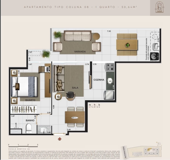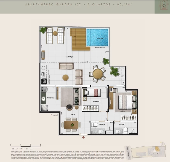 Apartamento Garden 1 quarto com 80m² / Apartamentos Garden 2 quartos com 90m² até 143m² / Apartamentos Garden 3 quartos com 155m² / Apartamentos de 1 quarto com 50m² / Apartamentos de 2 quartos com 58m² até 69m² / Apartamentos de 3 quartos com 65m² até 79m² / Coberturas de 2 quartos com 77m² até 118m² / Cobertura de 3 quartos com 129m²