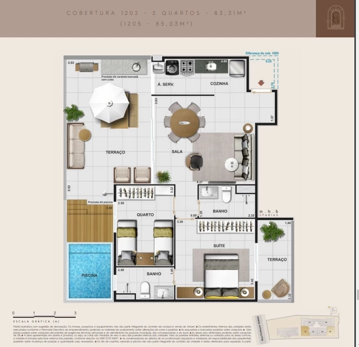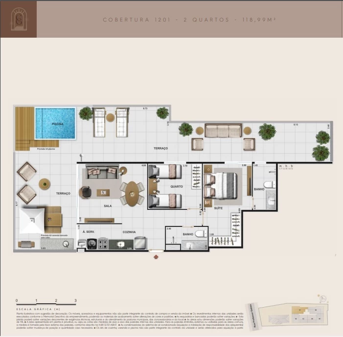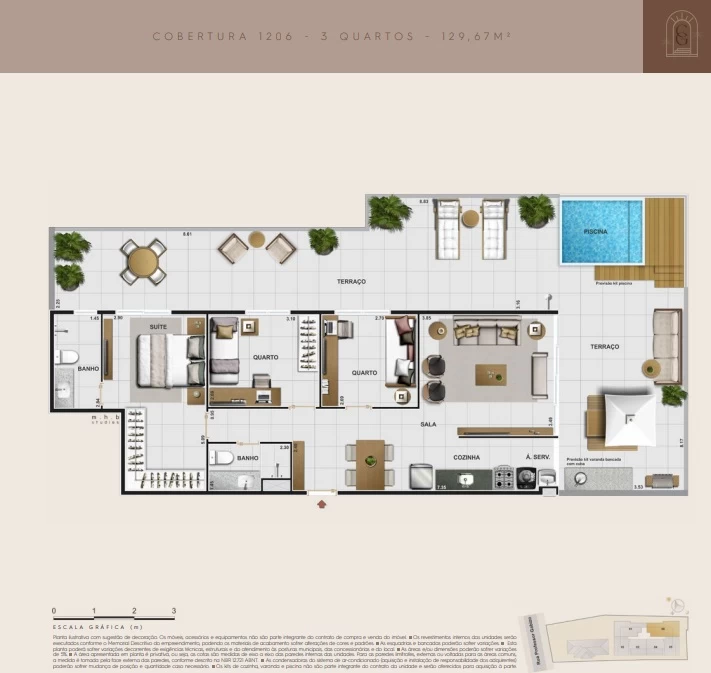 Cobertura de 3 quartos com 129m².