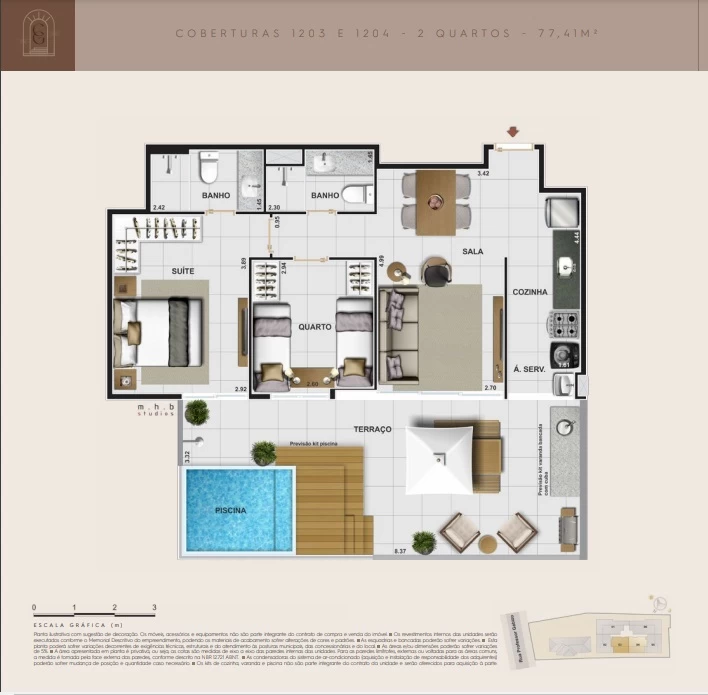 Coberturas de 2 quartos com 77m² até 118m².
